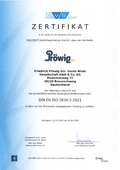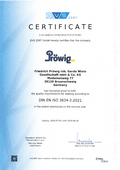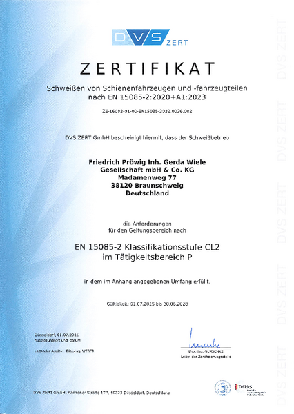 Wir, die Firma Friedrich Pröwig, Inh. Gerda Wiele GmbH & Co.KG, haben im Juli 2014 unser Zertifikat für die ISO 9001 erworben und im Anschluss daran das Zertifikat für einen Schweißfachbetrieb nach DIN EN ISO 3834 und HP0. Das Zertifikat für den Schweißfachbetrieb nach DIN EN ISO 3834 und HP0 beinhaltet, dass: