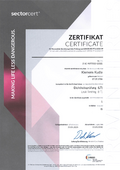 - unsere Schweißer ihre Qualifikation in Wiederholungsprüfungen nach DIN EN 287-1 bzw. EN ISO 9606-1 und 9606-2 und DIN EN ISO 9606-4 für Schmelzschweißer und nach EN ISO 14732 für Schweißpersonal nachweisen müssen;
