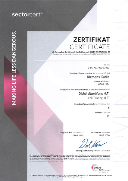 - alle geschweißten Produkte einer visuellen Überprüfung unterzogen werden, d.h. Schlauch, Schweißnähte und Anschlussteile werden vor der Auslieferung auch im Hinblick auf Einbau- und Anschlussmaße kontrolliert. Schlauchleitungen werden nie ohne Druck- und Dichtheitsprüfung versandt. Die Druck- bzw. Dichtheitsprüfungen erfolgen in Abhängigkeit des Prüfdruckes und der Nennweite des Schlauches und werden entweder mit Stickstoff unter Wasser oder hydraulisch und anschießend mit einer Dichtheitsprüfung mit Stickstoff unter Wasser bei reduziertem Prüfdruck unterzogen;